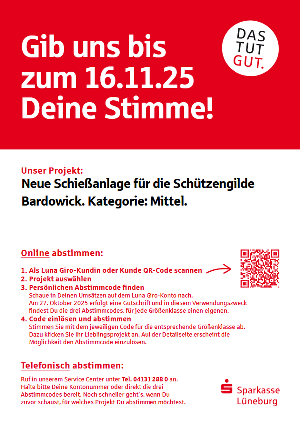 Für unsere neue Schießanlage bitten wir um eure Stimme, jede Stimme zählt!